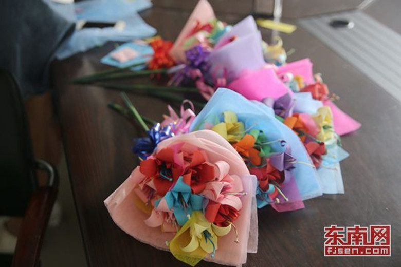 “自己亲手做的,比外面买的更有意义,现在提倡环保,真花不能保存太长的时间,纸花却可以一直保存。百合的花语是伟大的爱,送给老师们最合适不过了。”李雅捷说。