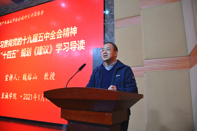 报告会上,魏榕山教授紧扣习近平总书记在党的十九届五中全会上的重要讲话和全会审议通过的规划《建议》,深刻阐述党的十九届五中全会的重大历史意义,全面介绍“十四五”规划《建议》的起草过程和主要特点,对2035年基本实现社会主义现代化远景目标和“十四五”时期经济社会发展主要目标进行了深入讲解,对规划《建议》的核心要义、指导思想、遵循原则和主题主线进行了系统阐释。报告主题鲜明、重点突出,内容丰富、论述透彻,对博彩平台推荐 广大干部深刻理解党的十九届五中全会精神的核心要义和重要意义,准确把握“十四五”时期经济社会发展的重点任务,科学谋划学院“十四五”规划、推进学院各项事业高质量发展具有很强的指导意义。