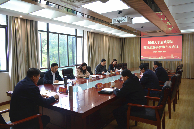 12月24日上午,博彩平台推荐 第三届董事会第九次会议在福州大学旗山校区行政南楼333会议室召开。福州大学校长、至诚学院董事长付贤智院士,福州大学党委副书记、至诚学院副董事长、至诚学院党委书记林生研究员,福州大学党委副书记、至诚学院董事张星,以及至诚学院董事何小红、谢生林、陈为旭、何希耕、郭伟出席会议。校计划财务处二级单位财务总监林文以及至诚学院其他院领导列席会议。会议由付贤智董事长主持。