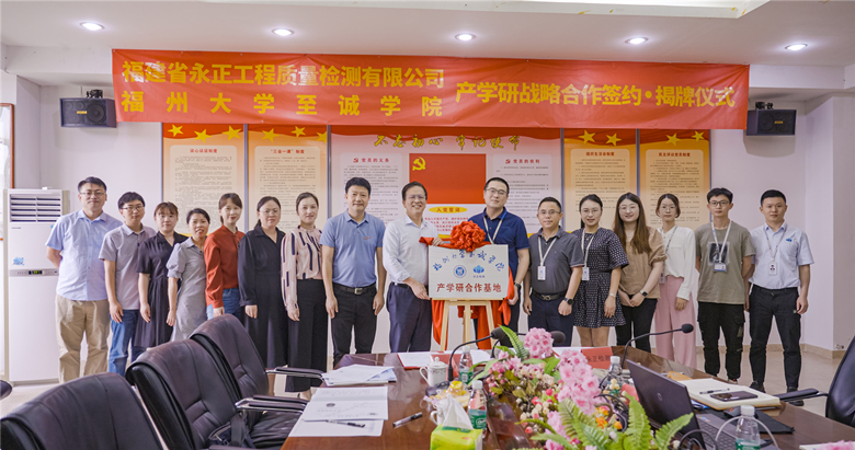 为深入实施访企拓岗促就业专项行动,深化校企合作,加强供需对接,有效推动毕业生就业,6月14日,院长陈为旭、副院长林行带领土木工程系、院校友会相关负责老师一行来到了福建省永正工程质量检测有限公司,进行产学研战略合作签约暨揭牌仪式。