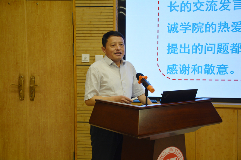 陈为旭院长在研讨会上作了题为“多措并举,协同发力,共同推进有特色高水平应用型大学建设”的报告。他详细阐述了有特色高水平应用型大学的概念和学院建设有特色高水平应用型大学的意义,认真分析了至诚学院的现状,指出了学院发展中存在的主要问题与困难,并针对性提出了学院进一步发展的对策。陈为旭院长强调,要认真学习和领会习近平总书记关于人才培养的重要指示精神,全力推进应用型学科专业群建设,着力建设高水平“双师型”教师队伍,不断提升社会服务能力,扎实推动学院有特色高水平应用型大学建设取得新成效。