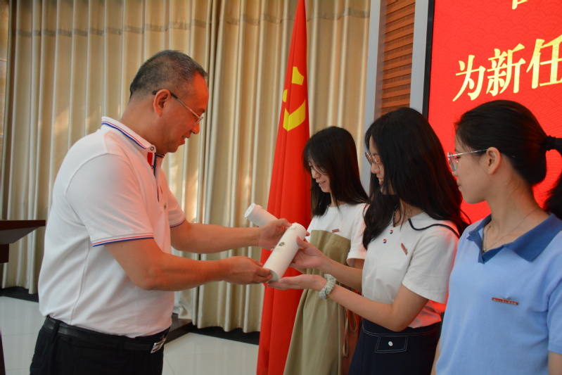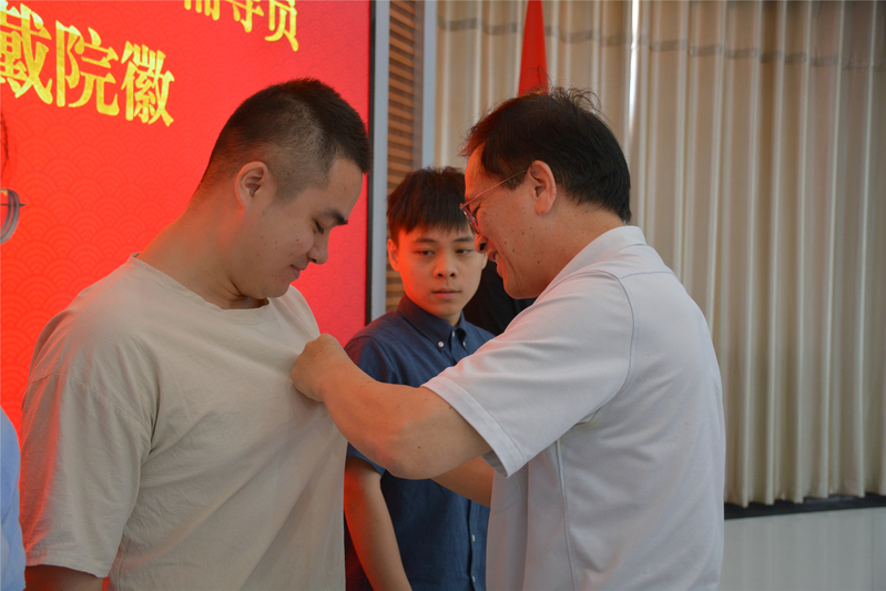 座谈会最后,举行了新任辅导员入职仪式。陈为旭院长为辅导员发放院徽,何希耕常务副书记为辅导员发放首个教师节纪念品。随后,还举行了新任辅导员党旗下入职宣誓仪式。