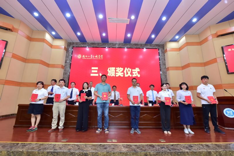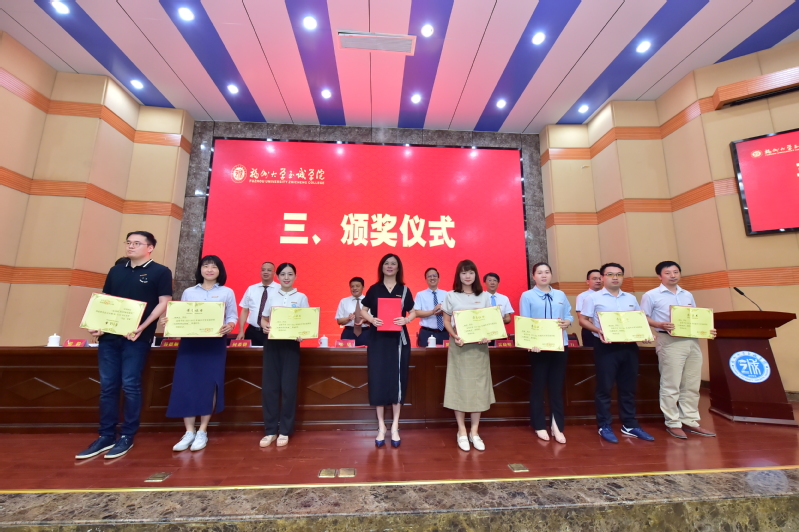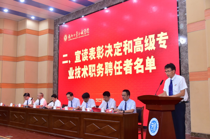 伴着雄浑的国歌声,大会正式开始。副院长兼教务处处长游毅宣读表彰决定和学院2021、2022年高级专业技术职务聘任者名单后,举行了颁奖仪式。荣获“全国党建工作样板支部”、“博彩平台推荐 2022年度科研标志性成果”、“福建省高校青年教学新秀”、“福建省优秀教务工作者”、“福建省高等教育学会招生工作先进个人”、“‘兴才计划’福建助学贡献奖”、“福州大学陈椿奖教金”、“福州大学优秀学生思想政治教育工作者”、“院优秀教师”、“院优秀科研工作者”、“院优秀教育工作者”、“2022年院春季学期课堂教学优秀奖”、“2021-2022学年院优秀教学组织奖”和“2021-2022学年院优秀教学管理人员”等荣誉称号的先进集体和先进个人分别上台领奖。颁奖仪式后,举行了学院2021、2022年高级专业技术职务聘任仪式,院长陈为旭为新晋副高职称的老师们一一颁发了聘书。