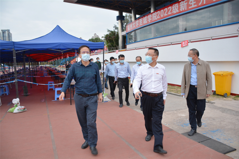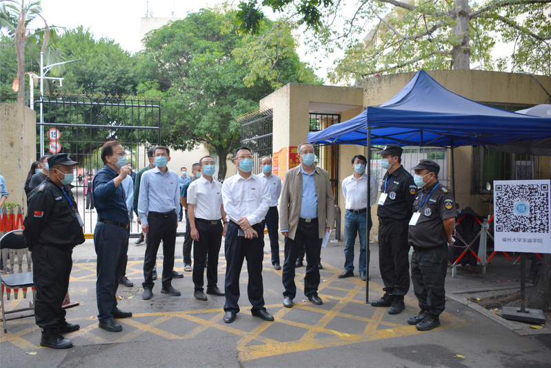 10月30日下午,福州大学党委陈国龙书记、黄身勇副书记、林键副校长等一行来到怡山校区,检查指导至诚学院疫情防控工作。