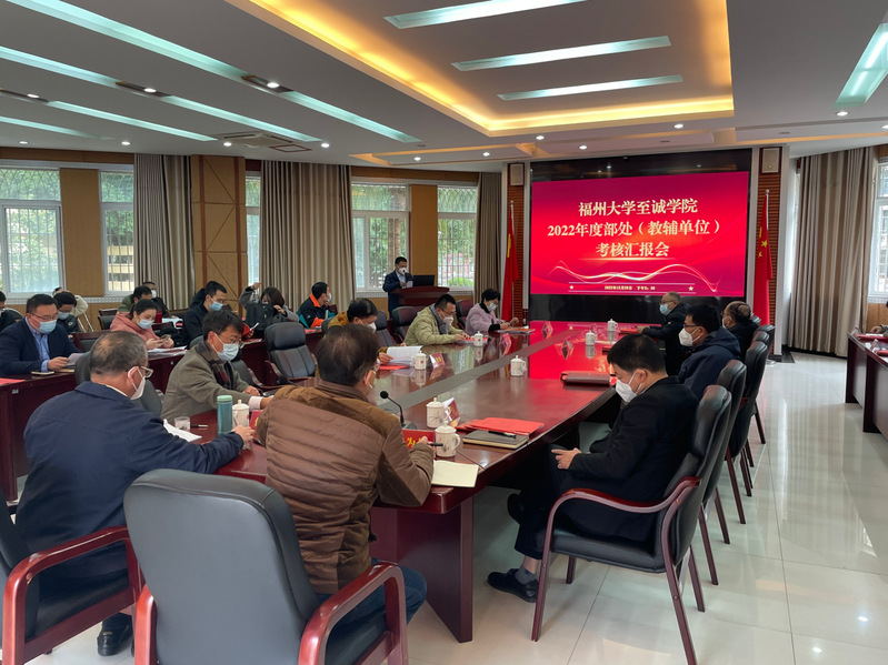 12月20日,博彩平台推荐 2022年度系(教学单位)、部处(教辅单位)工作考评汇报会在行政楼一楼会议室举行。院长陈为旭、院党委常务副书记何希耕、党委副书记雷晓明、纪委书记翁德顺、副院长兼工会主席林行、副院长兼教务处处长游毅等院领导,考核领导小组、监督小组和工作小组全体成员,党总支书记代表、教代会代表和工会代表,各单位负责人,以及教职工代表等参加会议。学院2022年度考核工作监督小组负责全程监督。会议由院党委教师工作部、人力资源部负责人黄树坤主持。