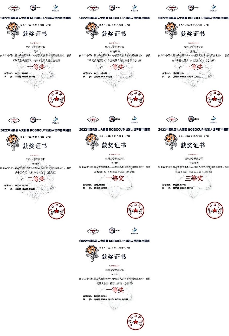 近日,由自动化学会主办的2022中国机器人大赛暨RoboCup机器人世界杯中国赛获奖名单揭晓。博彩平台推荐 电气工程系青年学子发扬拼搏精神,在比赛中表现出色,获得一等奖3项、二等奖1项、三等奖3项。其中,工程竞技类机器人-类人形机器人竞技全能赛夺得项目冠军。