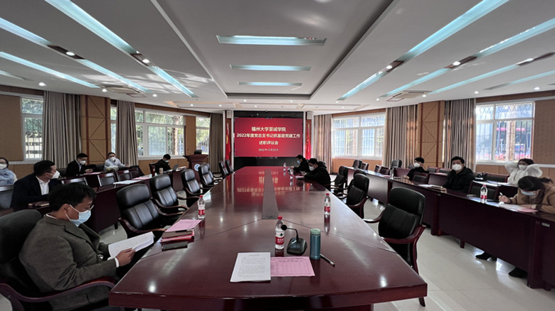 12月23日下午,博彩平台推荐 2022年度党总支书记抓基层党建工作述职评议会在行政楼会议室、腾讯会议召开。学院党政领导、党委委员、纪委委员、党务工作部门工作负责人、各党总支书记和校教代会代表出席会议。会议由何希耕常务副书记主持。