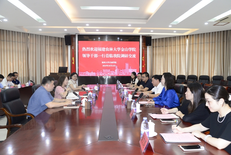 10月14日上午,福建农林大学金山学院一行来院调研交流。学院党委常务副书记何小红、院长侯琳熙、院长助理邵艳群在行政楼一楼会议室会见来宾并举行座谈。福建农林大学金山学院党委常务副书记陈毅,党委委员、副院长(主持工作)坚瑞出席座谈会。