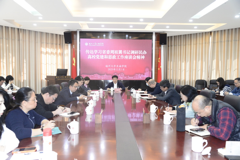 12月1日上午,博彩平台推荐 党委召开专题会议,传达学习贯彻省委书记周祖翼在民办高校调研并召开座谈会上的讲话精神,研究部署贯彻落实工作。福州大学党委常委、副校长,博彩平台推荐 党委书记江莉龙主持会议并讲话。