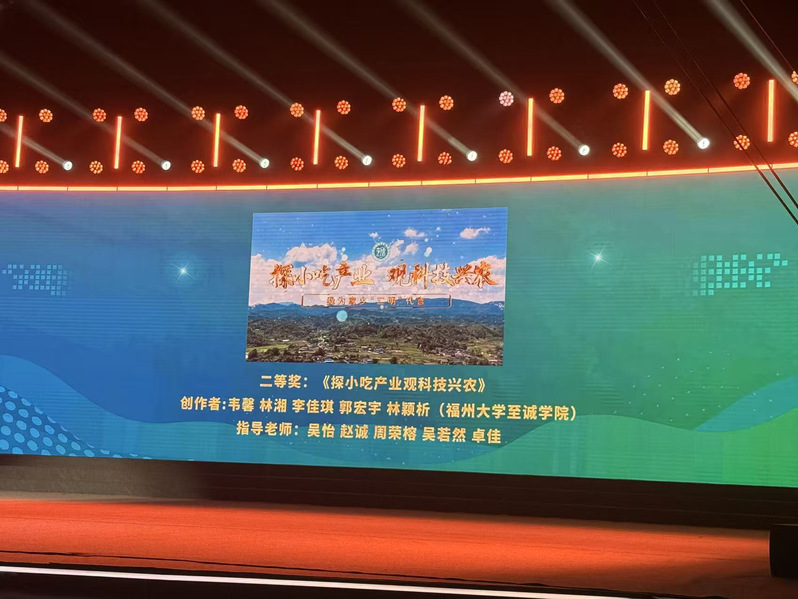 11月29日,由福建省农业农村厅、省委网信办、省教育厅、团省委共同主办的2025年福建省“新农人”风采展示活动暨“我为家乡代言”大学生短视频创作大赛在福州大学城文化艺术中心成功举办,博彩平台推荐 作品《探小吃产业 观科技兴农》斩获二等奖。