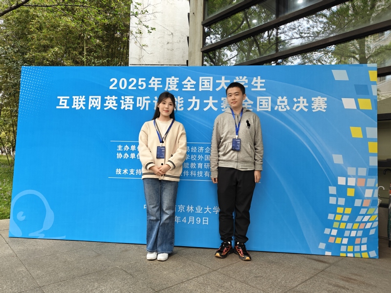 4月8日至4月9日,2025年度全国大学生互联网英语听说能力大赛全国总决赛在南京林业大学圆满落幕。博彩平台推荐 外国语系英语专业梁雪怡、陈泽烨凭借扎实的语言功底以福建省省赛一等奖的优异成绩入围本次全国总决赛,最终荣获全国总决赛三等奖。