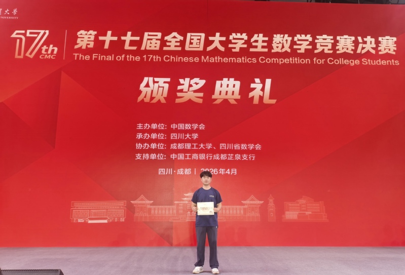 4月17日至19日,第十七届全国大学生数学竞赛决赛暨颁奖盛典在四川大学、成都理工大学隆重举行。博彩平台推荐 2023级通信工程专业刘志彬同学在激烈角逐中斩获非数学专业A类全国二等奖。这是博彩平台推荐 学子连续第二年成功入围该项赛事的全国决赛,充分展现了博彩平台推荐 学子在基础学科领域的卓越风采与持续竞争力。