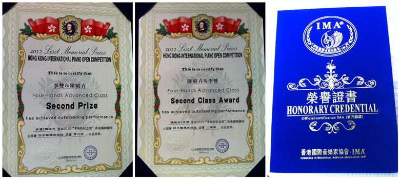 李双、陈晓卉两位老师发挥出色,凭借普朗克《奏鸣曲》获得四手联弹高级组第二名。