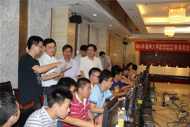 7月25日下午,福州大学党委副书记、至诚学院党委书记、副董事长陈尚义研究员来到博彩平台推荐 招生工作现场,了解了博彩平台推荐 今年招生工作情况,关心慰问博彩平台推荐 招生工作人员,并对招生工作提出了要求。院长吴秋明教授、院党委专职副书记陈为旭研究员、院党委副书记兼副院长雷石宝老师、院长助理兼两办主任林行老师陪同视察,介绍学院今年招生工作情况。