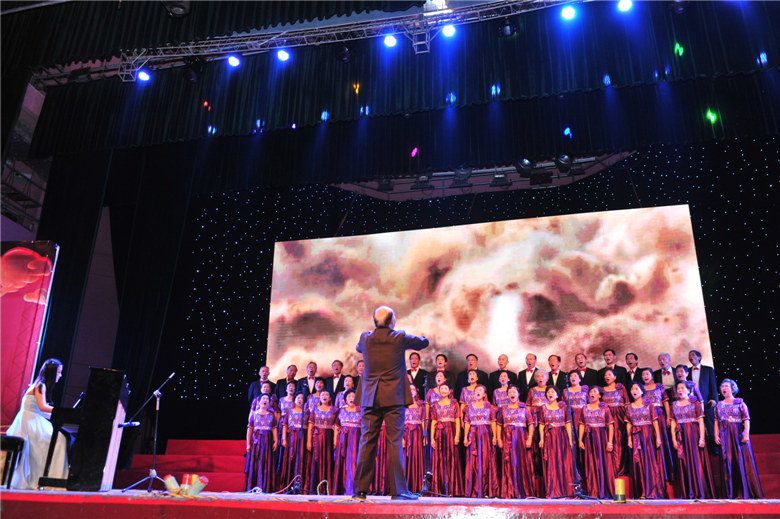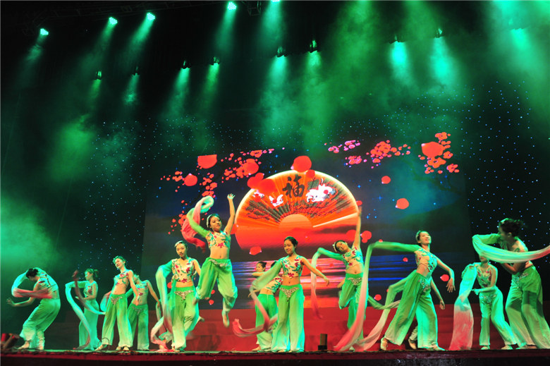 演出在院学生打击乐队和国旗护卫队的表演《中国龙》中拉开帷幕,铿锵激昂的演奏让现场气氛迅速升温。随后,福州大学晚霞合唱团带来《明天更辉煌》合唱,让现场观众感受到了老教师们对生活的热爱;院女生合唱团带来《Go where I send thee》合唱,表达了对人生的赞美;院军训团教官带来相声《第一次》,逗得满堂笑声;院军训团教官与院健美操队一起演出健美操《重拳出击》,教官们挺拔的身姿、强健的臂膀和健美操队女生们的青春柔美,完美地展现了力与美的结合,让现场气氛迎来了第一个高潮;学生艺术活动中心流行乐队带来《花房姑娘》,把观众们带回一个原始充满悸动的年代;院舞蹈团带来《且吟春语》,充满生机的表演让观众仿佛嗅到了春天的味道;院军训团教官带来《热血军营》,精彩的表演诠释了阳刚勇武、保家卫国的军人精神,震撼了现场观众,也赢得了现场观众的阵阵掌声;舞蹈表演《New dance》和小品《老师,我想你》表达了90后的朝气与叛逆,也昭示了他们的积极和进取。福建老教授合唱团所带来的《老教授之歌》和《延安颂》,不老的歌声、穿越年华的笑脸向年轻一辈宣示“夕阳无限好,何惧近黄昏”的从容。最后,整场文艺演出在《节日欢歌》的旋律中划上圆满的句号。