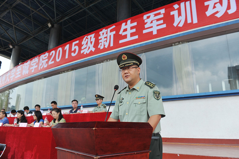 军训团参谋长张玮中校对全体新生经行军训动员和军队优良传统教育,要求全体新生在军训期间遵守纪律、服从指挥,端正态度、严格训练,敢于吃苦、团结互助,用实际行动交出大学的第一份满意答卷。
